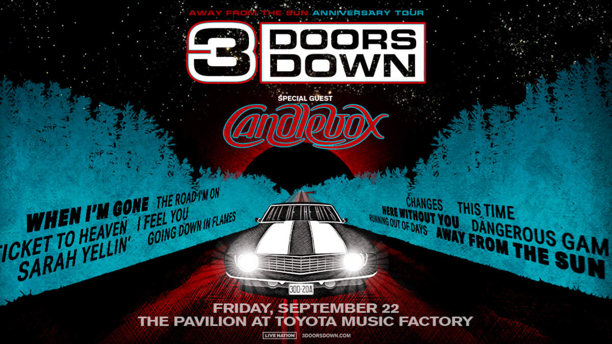 Star 102.1 welcomes 3 Doors Down - Away From the Sun Anniversary Tour w/ Candlebox to The Pavilion at Toyota Music Factory on Friday, September 22nd! Click HERE for tickets and more info!