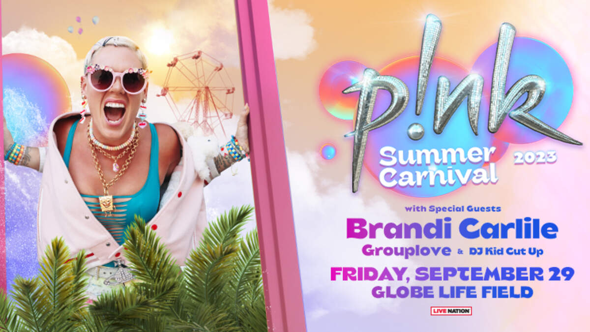 ☀️P!nk’s Summer Carnival 2023 is coming to Globe Life Field on Friday, September 29, 2023 with special guests Brandi Carlile and Grouplove! Get your tickets this Monday, November 21st at 10AM local time at Ticketmaster.com 🎠