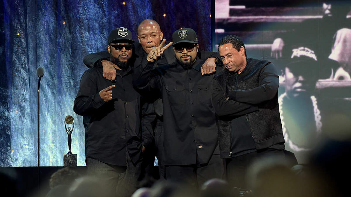 It was in this environment that Eric Wright, soon to be known as Eazy-E, grew up. By the time he was 23, he had four kids, and like many of his contemporaries, he dealt drugs to pay the bills. But he was smart about it; he didn’t live large, he didn’t call attention to himself, and he wore all black everything to maintain neutrality and avoid gang colors. But he knew it was only a matter of time before the gangs or the police or both caught up to him, and the only other thing he liked was rap music. He met Andre Young, or Dr. Dre, who made beats, and O’Shea Jackson, calling himself Ice Cube, who wrote lyrics, and N.W.A. was born. “They were forced to dodge stray bullets from rival gangs and shakedowns from abusive cops on the regular. This violent and horribly unjust daily life informed N.W.A.’s music, imbued it with a sense of reality that previously had not existed in pop music and for many, was too unbelievable to be true.” Their first album, Straight Outta Compton, was a sensation. “Reality raps over hard beats come to life in album form over 60 minutes. And it was as hard to ignore as fresh spray from an AK-47.”