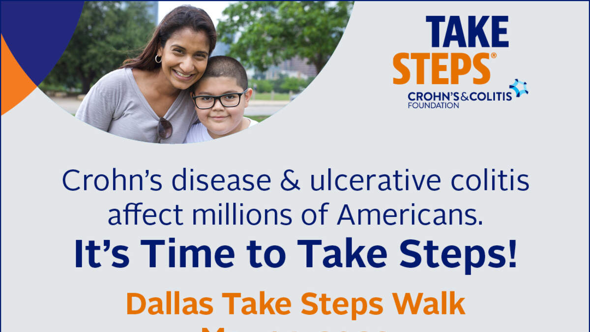 Crohn's disease & ulcerative colitis affect millions of Americans. It's time to take steps Dallas! Join the Take Steps Crohn's & Colitis Foundation on May 14, 2022 at Riders Field in Frisco, for the Dallas Take Steps Walk. Register today at www.cctakesteps.org/Dallas2022. Let's become Tougher. Stronger. Smarter.